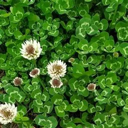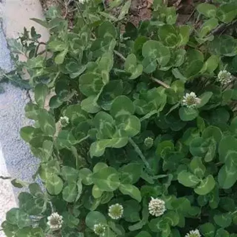 白车轴草,豆科车轴草属的多年生草本植物,茎贴地匍匐;叶柄直立,小叶心形,边缘具细齿,叶脉明显,…