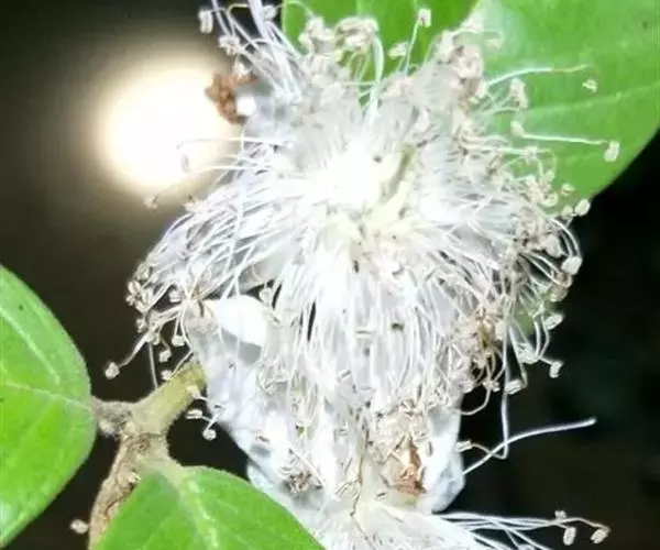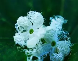 花雌雄同株。雄花组成总状花序,常有1单生雌花并生,花序梗长10-18厘米,疏被短柔毛及长硬毛,顶端具8-10花,花梗细,长5-12毫米,密被短柔毛;苞片钻状披针形,长3 (-5) 毫米;花萼筒近圆筒形,长2.5-3厘米,顶端略扩大,径4-5毫米,密被短柔毛及疏被长柔毛状硬毛,裂片狭三角形,长约2毫米,基部宽约1毫米,反折;花冠白色,裂片卵状长圆形,长7-8毫米,宽约3毫米,具3脉,流苏与花冠裂片近等长;花药柱卵球形,长约3毫米,花丝纤细,长约2毫米;退化雌蕊具3枚纤细分离的花柱。雌花单生,花梗长不及1厘米,密被长柔毛;花萼及花冠同雄花;子房棒状,长2.5-3厘米,径约3毫米,密被极短柔毛及长柔毛状硬毛。