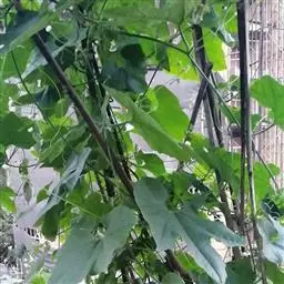 搭架整枝蛇瓜藤蔓发达,生长茂盛,分枝能力强,且瓜条较长,所以需要搭篱架或棚架,当瓜蔓长超过30厘米时,要及时绑蔓、引蔓上架。蛇瓜连续坐果能力强,它的主蔓侧蔓都结瓜,但一般主蔓结瓜,瓜条大,畸形瓜少侧蔓结瓜,瓜条小,畸形瓜多,所以可根据栽培方式及上市早晚适当修剪侧蔓。上市越早、栽培模式越精细的,侧蔓修剪越彻底,一般每株可留2-3根侧蔓,日光温室可将侧蔓全部剪去,只留主蔓结瓜。蛇瓜植株基部节位着生雄花序,上部雌花节位也着生雄花序,这些雄花序消耗大量的养分,所以需要疏去基部和雌花节位上的雄花序,摘除部分卷须,集中养分供给雌花,促进结瓜。