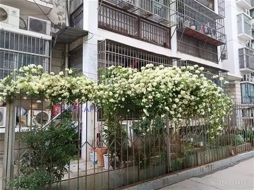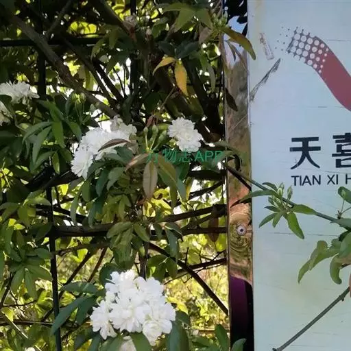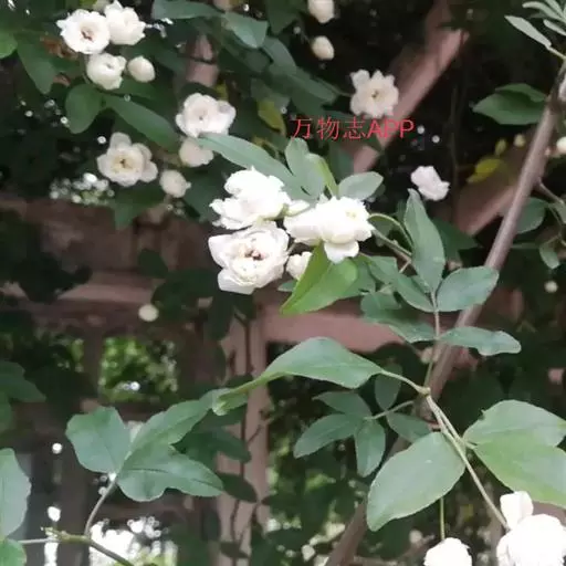 木香花(学名:Rosa banksiae Ait.)是攀援小灌木,高可达6米;小枝圆柱形,无毛,有短小皮刺;小叶3-5,叶片椭圆状卵形或长圆披针形,花小形,多朵成伞形花序,萼片卵形,花瓣重瓣至半重瓣,白色,倒卵形,花期4-5月。生溪边、路旁或山坡灌丛中,海拔500-1300米。