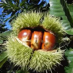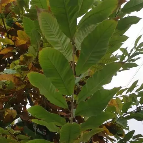 栗,壳斗科栗属落叶乔木植物,茎枝较粗,呈圆柱形;表面深绿色,有细纵纹和小绒毛;叶多卷曲,具短柄,…