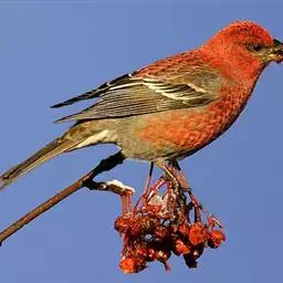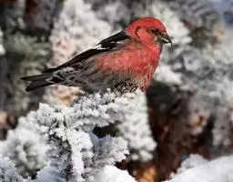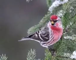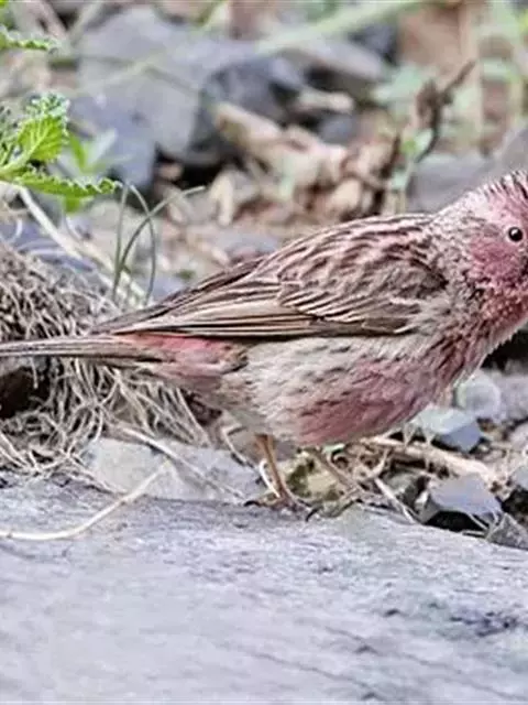 藏朱雀:全长约17-18厘米。雄鸟头部深红色具光辉,喉部暗红色具白色点斑;背部灰白色,各羽具玫瑰红…