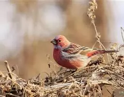 红眉朱雀:体长15厘米,是一种中等体型的朱雀。上体褐色斑驳,眉纹、脸颊、胸及腰淡紫粉,臀近白。…