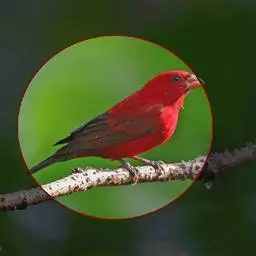 红腰朱雀:体长12-14厘米,小型鸟类。雄鸟前额和眉纹玫瑰粉红色,头顶和一宽的贯眼带深红褐色,背红…