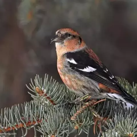 长尾朱雀:体长18厘米,体重16-26克。雄鸟额、颏和眼后为暗红色,…