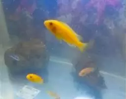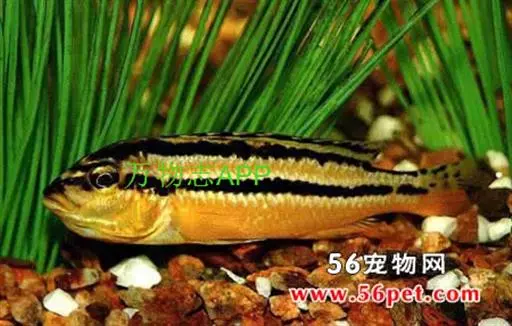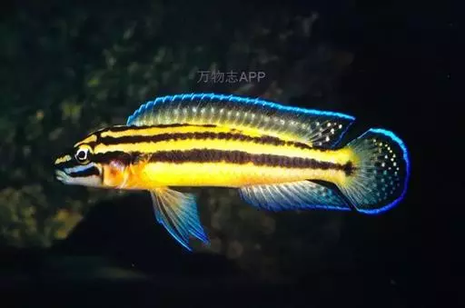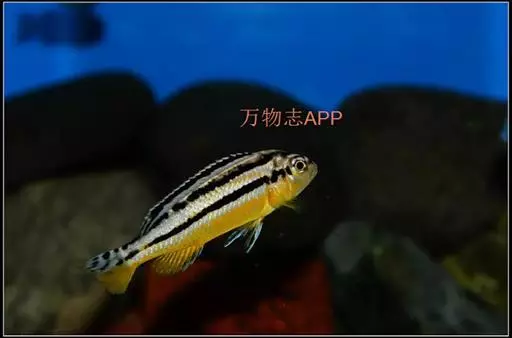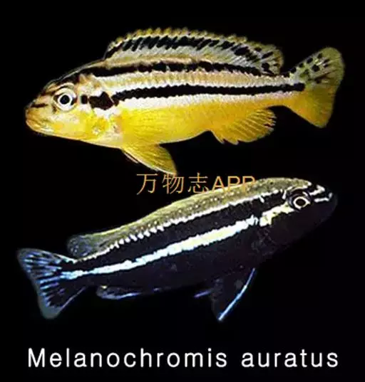 非洲凤凰鱼(Melanochromis auratus),身上的水平斑纹清晰可见。雄鱼只有在雌鱼出现的情况下才会呈现出保卫领域的行为,但一旦雌鱼扫兴而去,雄鱼也就会离开曾经保卫的领域。对于其他的雄鱼,非洲凤凰的雄鱼会表现出极强的攻击性,甚至试图杀死任何黑丽鱼属岩栖类的雄性。由于存在杂交的风险,它们不应该和其他的黑丽鱼属岩栖类混养在一起。非洲凤凰的基础色是明亮的黄色,上面并伴有一条黑色的水平条纹。成熟后雄鱼的腹部变多名为深褐色.
