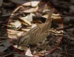 稀树草鹀属于小型鸣禽,体羽和麻雀非常相似,像暗条褐色的背部,下体棕色或黑色的胸部,白色的腹部及侧面条纹。顶冠白色,眼眉具条纹,双颊棕色,喉咙白色,飞羽黑褐色,有浅棕色或白色边框。