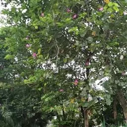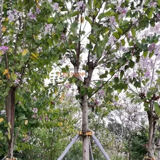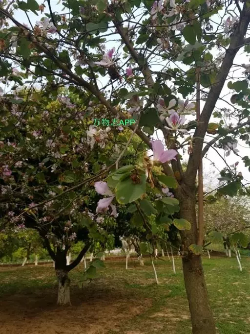 洋紫荆:落叶乔木;树皮暗褐色,近光滑;幼嫩部分常被灰色短柔毛;枝广展,硬而稍呈之字曲折,无毛。叶近…