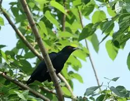 大杜鹃栖息于山地、丘陵和平原地带的森林中,有时也出现于农田和居民点附近高的乔木树上。