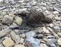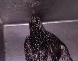 幼鸟头顶、后颈、背及翅黑褐色,各羽均具白色端缘,形成鳞状斑,以头、颈、上背为细密,下背和两翅较疏阔。飞羽内侧具白色横斑;腰及尾上覆羽暗灰褐色,具白色端缘;尾羽黑色而具白色端斑,羽轴及两侧具白色斑块,外侧尾羽白色块斑较大。颏、喉、头侧及上胸黑褐色,杂以白色块斑和横斑,其余下体白色,杂以黑褐色横斑。