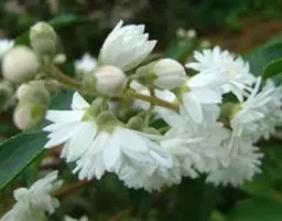 小花溲疏灌木,高约2米;老枝灰褐色或灰色,表皮片状脱落。叶纸质,卵形、椭圆状卵形或卵状披针形。…