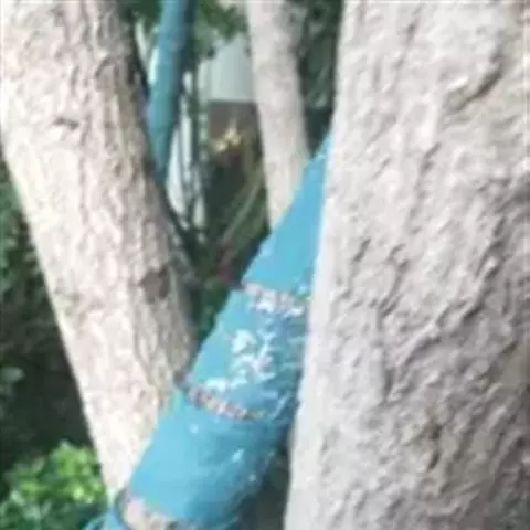 定植 种苗要遵循随到随种、先到先种、常绿树种先于落叶树种植的原则。据苗木深 浅要求,将其放入坑内。栽植深度略深于原来的2~3厘米,具体需根据土壤特性而定,盐 碱度重且粘性较强的土壤宜浅植,相反则深植。带土球苗木剪断草绳(若为麻绳必须取出),边埋土边夯实。裸根树木栽植时,根系要舒展,不得窝根,当填土至坑的1/2时,将苗 木轻轻提几下,再填土、夯实。树木栽好后,做好三角支架或铅丝吊桩。支柱与树干相接部 分要垫上蒲包片,以防磨伤树皮。