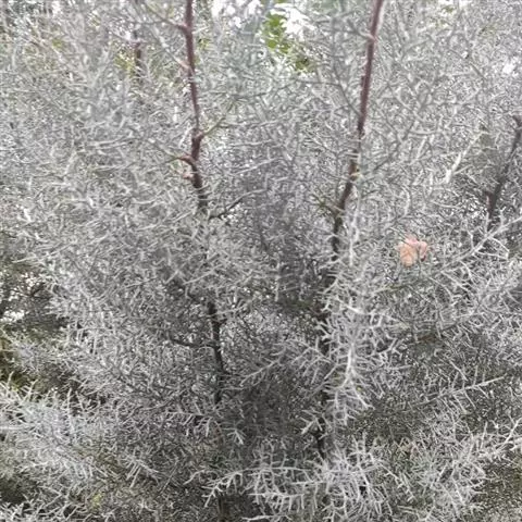 蓝冰柏,学名Cupressus Blue Ice,柏科,柏木属。常绿树种,耐高温,能适应多种气候及土壤条件。形态特征垂直、整洁且紧凑,整体呈圆形。适宜温度-25至35度,叶色霜蓝色,耐旱耐盐碱,抗性强。蓝冰柏树姿优美,可孤植或丛植,是欧美传统的彩叶观赏常绿树种。由于其株型垂直,枝条紧凑且整洁,整体呈圆锥形,白天呈现高雅脱俗、迷人的霜蓝色,夜里若配上五颜六 色的灯光。则扑朔迷离。是圣诞树的首选。片植可修剪成色块,单植可修剪成球形、圆柱形,适用于隔离树墙、绿化园艺或工程绿化。蓝冰柏,所有叶片终年呈现霜蓝色。被誉为蓝色系彩叶树种之冠 最优的色块观赏树种 。