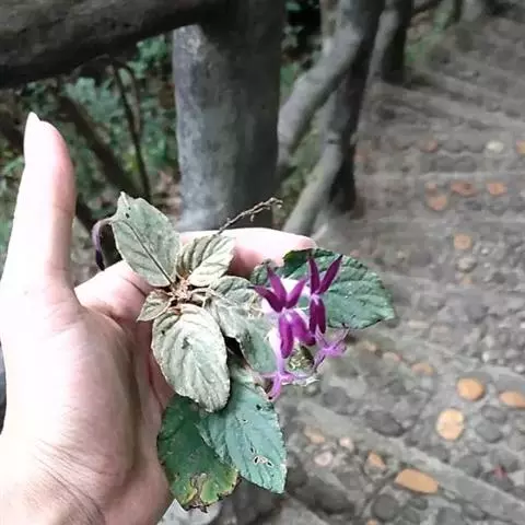 聚伞花序2-3次分枝,2-4条,每花序具8-11花;花序梗长10-22厘米,与花梗密被褐色绵毛;苞片2,线状钻形,长6-8毫米,密被淡褐色绢状绵毛;花梗长9-15毫米。花萼5裂至基部,裂片相等,线状披针形,长3-4毫米,外面被绢状绵毛。花冠细筒状,长8-10毫米,直径约5毫米,淡紫色,外面被短柔毛;筒长5.5-6毫米,直径约3毫米,喉部不缢缩;檐部稍二唇形,长1.5-2.5毫米,上唇2裂,裂片近圆形,长1.5-2毫米,下唇3裂,裂片圆形,长1-2毫米。