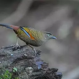 蓝翅噪鹛:噪鹛科、彩翼噪鹛属动物。中型鸟类,体长22-25厘米。上体棕橄榄褐色密被黑色鳞状斑,…