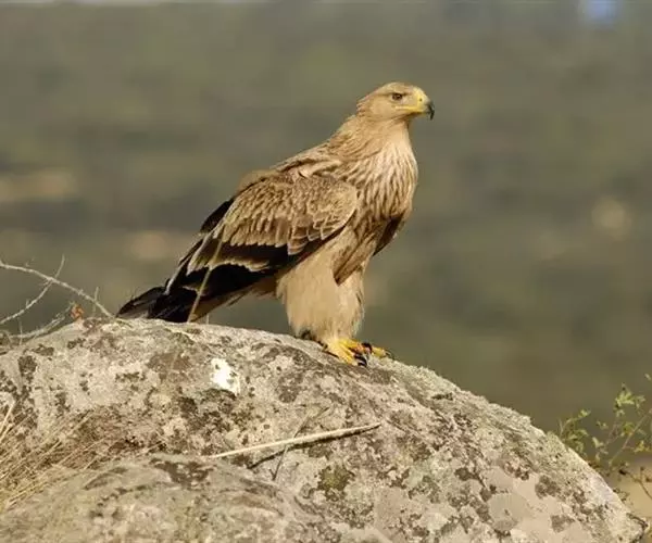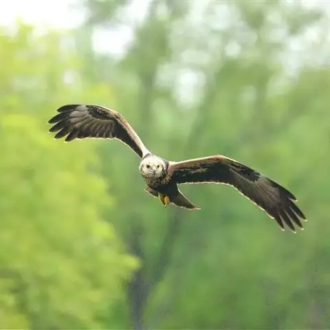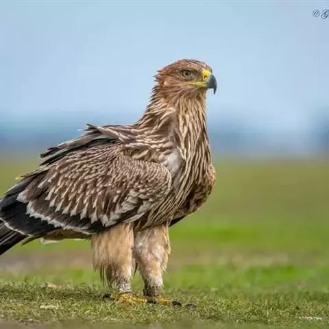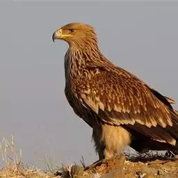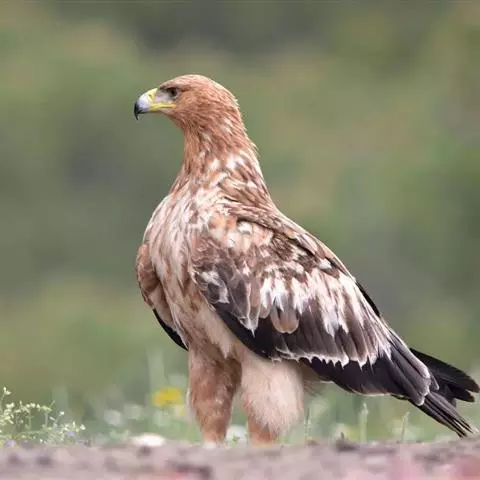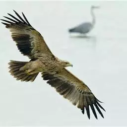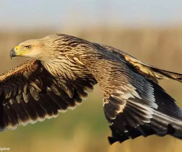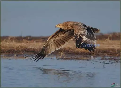 白肩雕(学名:Aquila heliaca):又名御雕,是大型猛禽。体长73-84厘米。体羽黑褐色,头和颈较淡,肩部有明显的白斑,在黑褐色的体羽上极为醒目,很远即可看见,这是区别其他雕的主要特征。滑翔时两翅平直,滑翔和翱翔时两翅亦不上举成‘V’字形;同时飞翔时尾羽收得很紧,不散开,因而尾显得较窄长。幼鸟头皮黄褐色,背具黄褐色斑点,飞翔时尾常散开成扇形。
