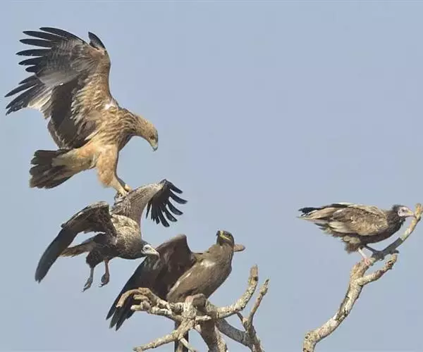 常单独活动。或翱翔于空中,或长时间的停息于空旷地区的孤立树上或岩石和地面上。