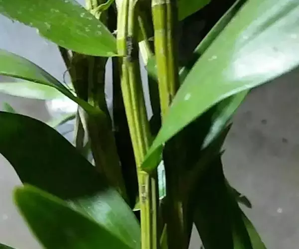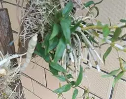 景洪石斛:茎直立,细圆柱形,多少木质化,上部常分枝,基部上方2-3个节间膨大呈纺锤形;膨大部分的茎…