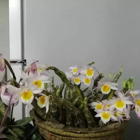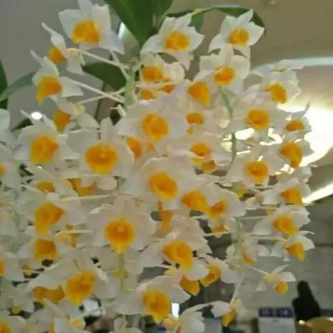 石斛(学名:Dendrobium nobile Lindl),又名仙斛兰韵、不死草、还魂草、紫萦仙株、吊兰、林兰、禁生、金钗花等。茎直立,肉质状肥厚,稍扁的圆柱形,长10~60厘米,粗达1.3厘米。药用植物,性味甘淡微咸,寒,归胃、肾,肺经。益胃生津,滋阴清热。用于阴伤津亏,口干烦渴,食少干呕,病后虚热,目暗不明。石斛花姿优雅,玲珑可爱,花色鲜艳,气味芳香,被喻为“四大观赏洋花”之一。