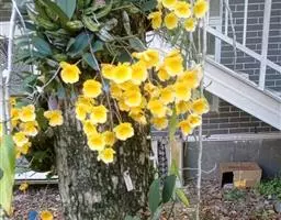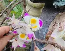 贴树栽植。 在选好的树上,按30~40厘米在树上砍去一部分树皮将种蔸涂一薄层牛粪与泥浆混合物,然后塞入破皮处或树纵裂沟处贴紧树皮,再覆一层稻草,用竹蔑捆好。