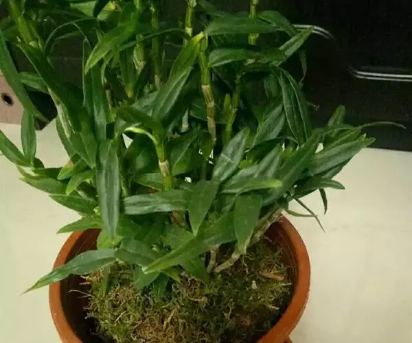 刀叶石斛:茎近木质,直立,有时上部分枝,扁三棱形,具多个节。叶二列,疏松套叠,厚革质或肉质,斜立,…