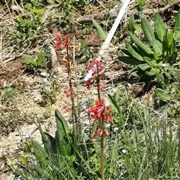 多年生草本,具极短的根茎和成丛的粗长支根。叶椭圆状倒披针形,长10-22(30)厘米,宽3-8(10)厘米,先端钝或圆形,基部渐狭窄,下延至叶柄,边缘具稍不整齐的小牙齿,下面被粉质腺体,中肋宽扁,红色,侧脉常多达15对,与中肋成45度角;叶柄长为叶片的1/4-1/2,红色,具翅。