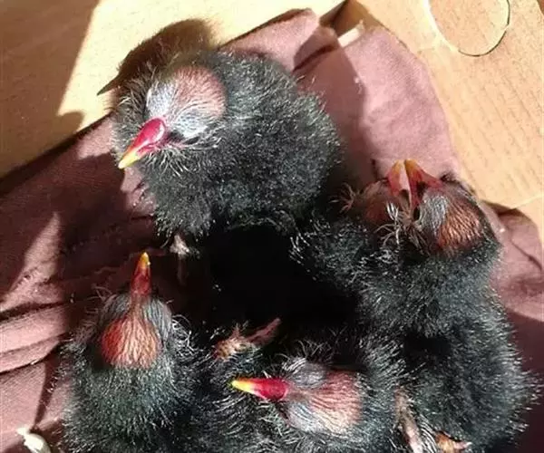 育雏:雏鸟为早成鸟,全身被黑色绒羽,在巢内停留1~2天,3日龄可游泳,8日龄可潜水,雌雄共同喂养照顾雏鸟,有时前窝产的未成年鸟和同窝内的其他成鸟也参与照顾雏鸟。21~25日龄可自行觅食,45~50日龄长出飞羽,72日龄可独立生活。