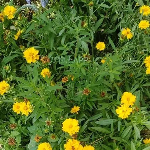 金鸡菊(学名:Coreopsis drummondii Torr. et Gray)是菊科,金鸡菊属一年生或二年生草本植物,高可达60厘米,叶片羽状分裂,裂片圆卵形至长圆形,头状花序单生枝端,外层总苞片与内层近等长,舌状花黄色,基部紫褐色,状黑紫色。瘦果倒卵形,7-9月开花。