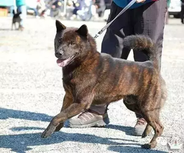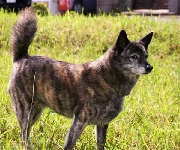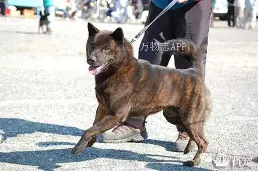 肌肉强健,勇敢而敏捷,被认为是天生的猎手,可信赖的家庭守护者。头部呈中等长度的楔形,两耳间宽阔,向吻端逐渐变狭窄。颅骨宽阔,接近平坦,有中沟;颊部发育良好。吻部长度约等于颅骨长度,从侧面看颅顶和吻部平行,厚度中等。眼下饱满,鼻梁直。下颚强健但不凸出,嘴唇黑色,闭合紧密。牙齿剪状咬合,水平咬合也可接受。鼻子一般纯黑色,不凸出吻部。眼睛相对较小,黑棕色,眼缘黑色,略呈三角形,但比秋田犬圆。耳朵强直,相对与头部比较大,三角形,耳根位于颅骨外侧,不太低。颈部中等长度,肌肉厚实。胸部深而宽阔。背线从肩隆处向下倾斜,然后变为水平;背部肌肉发育良好,腰部肌肉健壮,较短。肋部中度扩张。前肢直,肌肉丰满,骨量充足;上臂靠近肋部但依然灵活。后肢骨量重,肌肉发达,非常有力。足部中等长度,圆形;足垫厚;趾甲结实,黑色。尾巴尾跟高,镰刀状尾巴最理想,卷曲在背上的也可以接受。在狩猎时有时尾巴向后伸直。披毛双层,中等长度;外层毛粗糙,直;内层毛厚实,柔软,密实。头部、腿部、耳朵毛发比身体上毛发稍短,尾巴上的毛发有点长。披毛呈虎斑纹状,因此外号被称作“老虎”(Tora),任何颜色斑纹都同样被接受。幼犬通常是黑色绒毛,成年犬才呈现斑纹,但有的直到5岁才完全显现。边缘清晰的斑纹是最好的。在腿部、胸前、前肢之间、腹下出现些白色是可接受的,但腿部的白色部位不能超过膝关节。身体上不能混杂白色毛发。
