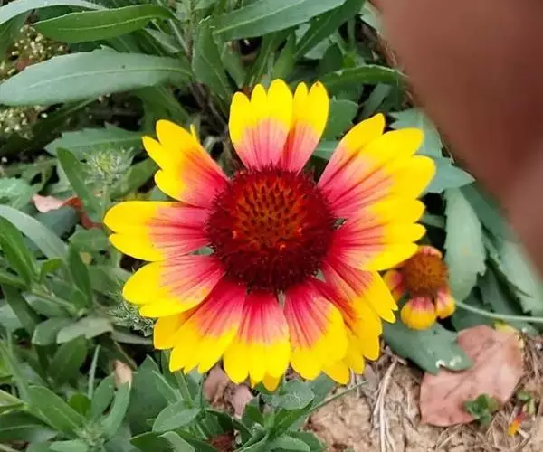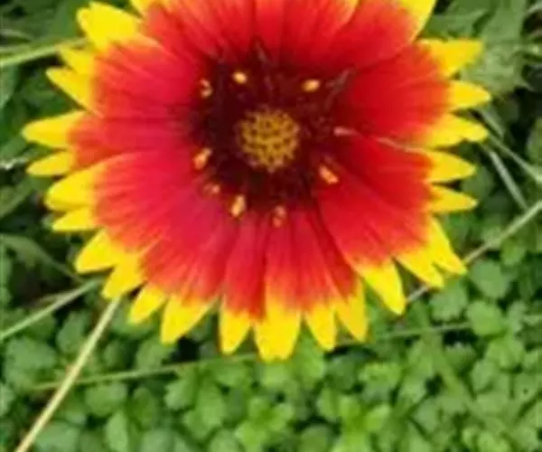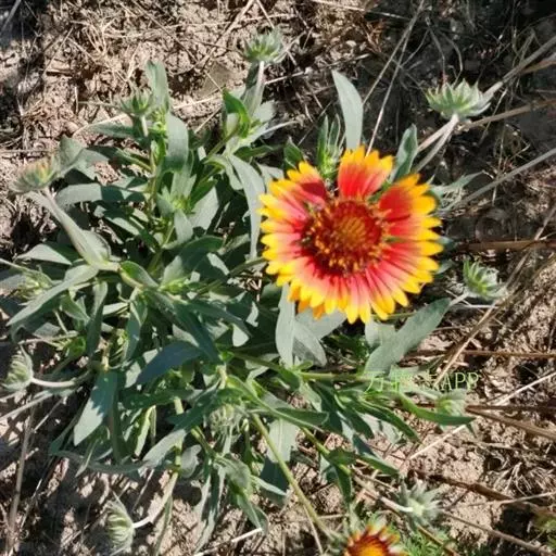 天人菊(学名:Gaillardia pulchella Foug.)菊科一年生草本,高20-60厘米。茎中部以上多分枝,分枝斜升,被短柔毛或锈色毛。下部叶匙形或倒披针形,边缘波状钝齿、浅裂至琴状分裂,先端急尖,近无柄,上部叶长椭圆形,倒披针形或匙形,叶两面被伏毛。头状花序径5厘米。总苞片披针形,边缘有长缘毛,背面有腺点。舌状花黄色,基部带紫色,舌片宽楔形,顶端2-3裂;管状花裂片三角形,被节毛。瘦果长2毫米,基部被长柔毛。冠毛长5毫米。花果期6-8月。