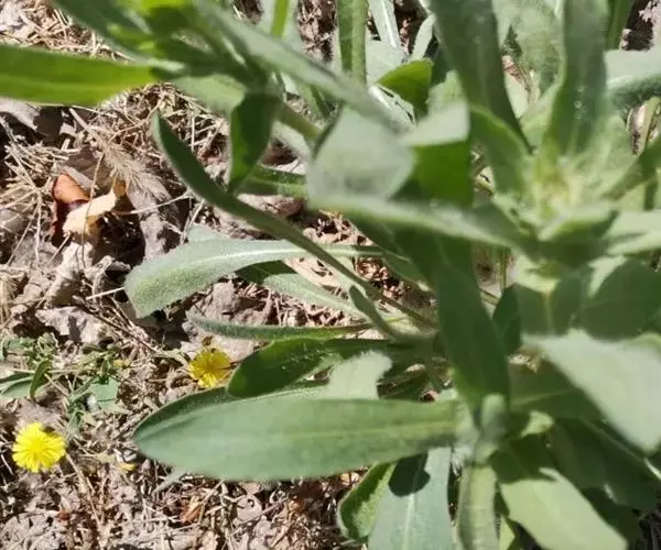一年生草本,高20-60厘米。茎中部以上多分枝,分枝斜升,被短柔毛或锈色毛。下部叶匙形或倒披针形,长5-10厘米,宽1-2厘米,边缘波状钝齿、浅裂至琴状分裂,先端急尖,近无柄,上部叶长椭圆形,倒披针形或匙形,长3-9厘米,全缘或上部有疏锯齿或中部以上3浅裂,基部无柄或心形半抱茎,叶两面被伏毛。
