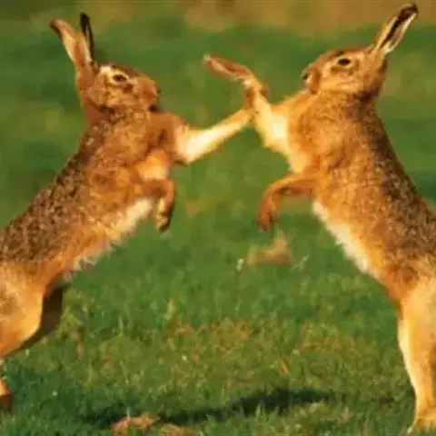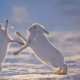 野兔是独自或成对生活的,一般都是害羞的动物,并会在春天改变其行为模式。雄兔会在白天互相追逐,来显示自己的优越性。而雌兔则会“拳击”雄兔,目的似乎是表示它们未有准备交配,或是测试雄兔的决心 。(《野兔雪地全速飞奔》相册参考资料 )