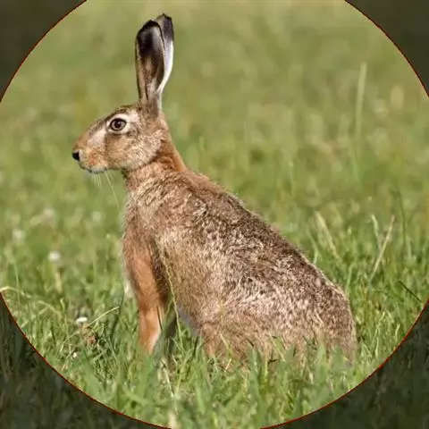 野兔头小,长有一对比家兔小得多的耳朵,与穴兔相比耳朵稍长一些,耳尖呈黑色,成年野兔一般耳长13 厘米,为身长的1 / 5 ,四肢细长、健壮,后肢十分强健,有力也比普通家兔长,敏捷,胆小,善于奔跑。体型相对于家兔来说要小得多,一般体长35~43 厘米,尾长7~9 厘米,成年野兔一般在2 . 5~3 千克左右。