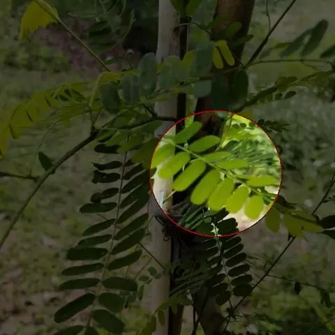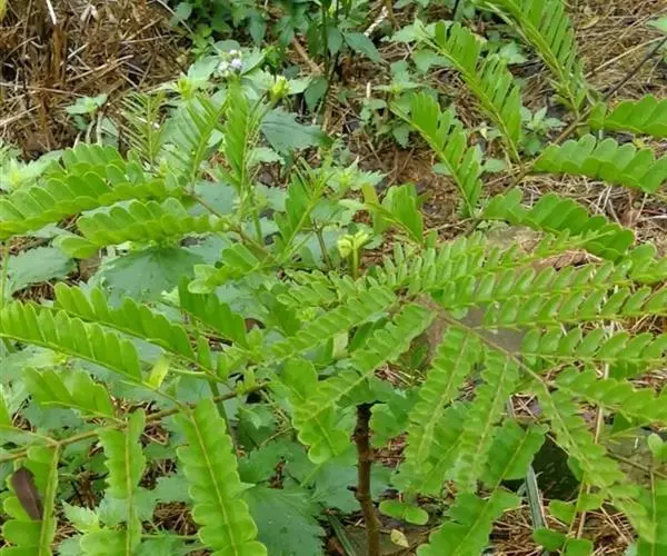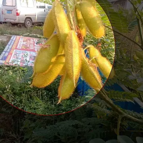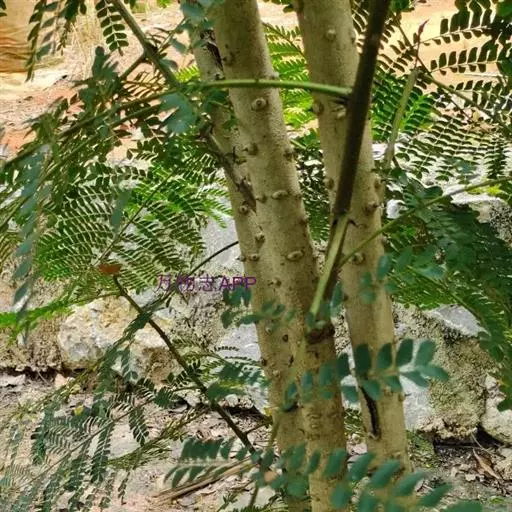 小乔木,高达6米,具疏刺,除老枝、叶下面和荚果外,多少被细柔毛;枝上的皮孔密而显著。二回羽状复叶长30-45厘米;羽片7-13对,对生,长8-12厘米,小叶10-17对,紧靠,无柄,小叶片纸质,长圆形至长圆状菱形,长1-2厘米,宽5-7毫米,先端微缺,基部歪斜,以斜角着生于羽轴上;侧脉纤细,在两面明显,至边缘附近连结。