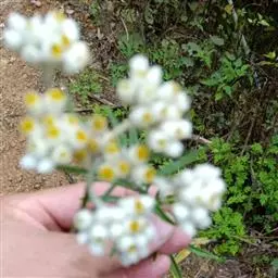 香青(学名:Anaphalis sinica Hance)是菊科香青属多年生草本植物,根状茎木质,有长达8厘米的细匍枝。茎直立,高可达50厘米,全部有密生的叶。下部叶在下花期枯萎。中部叶片长圆形,倒披针长圆形或线形,基部渐狭,边缘平,上部叶较小,披针状线形或线形,全部叶上面被蛛丝状棉毛,在棉毛下常杂有腺毛,头状花序多数或极多数,花序梗细。总苞钟状或近倒圆锥状,总苞片外层卵圆形,浅褐色,被蛛丝状毛,内层舌状长圆形,乳白色或污白色,长椭圆形,花序全部有雄花。瘦果被小腺点。6-9月开花,8-10月结果。