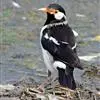 斑椋鸟:是中等体型的黑白色椋鸟,体长24厘米。头顶、头侧、翼斑、腰及腹部白色,喉、胸及上体余部黑色,…
