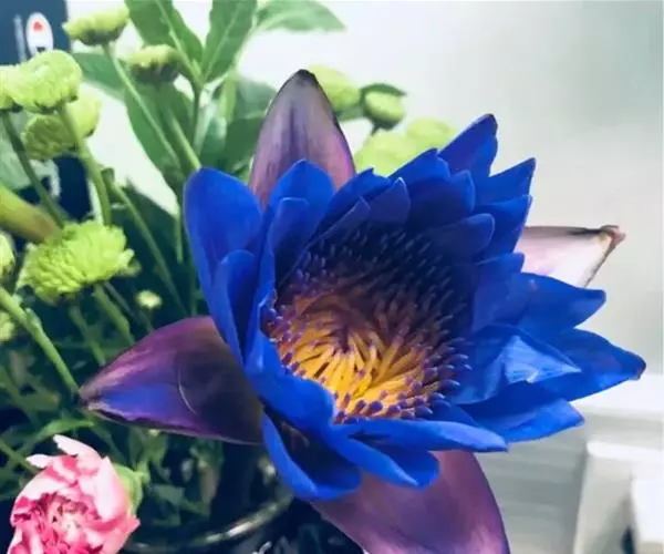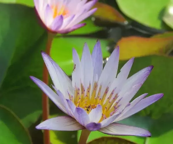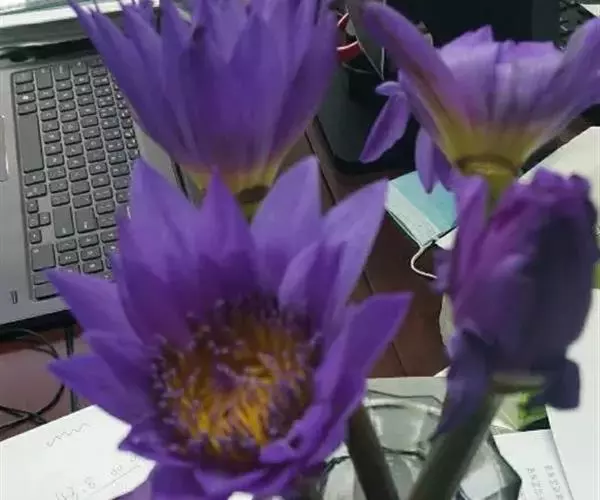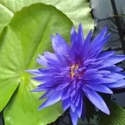 延药睡莲(学名:Nymphaea stellata Willd. ):是多年生水生草本;根状茎肥厚。叶二型:浮水叶圆形或卵形,基部具弯缺,心形或箭形,常无出水叶;沉水叶薄膜质,脆弱。花形美丽,浮在或高出水面;萼片4,近离生;花瓣成多轮,心皮环状,贴生且半沉没在肉质杯状花托,且在下部与其部分地愈合,上部延伸成花柱,柱头成凹入柱头盘,胚珠倒生,垂生在子房内壁。浆果海绵质,不规则开裂,在水面下成熟;种子坚硬,为胶质物包裹。栽培供观赏。