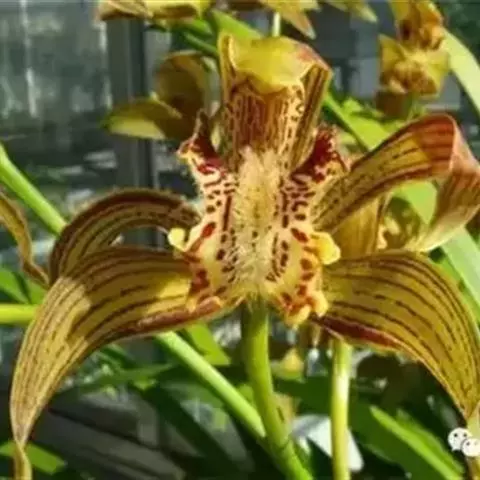 虎头兰是兰科兰属附生植物。假鳞茎窄椭圆形或窄卵形;叶呈带形;花葶长45-60厘米,苞片卵状三角形,…