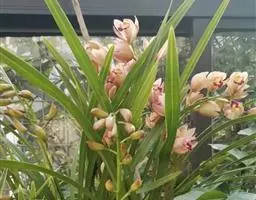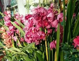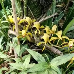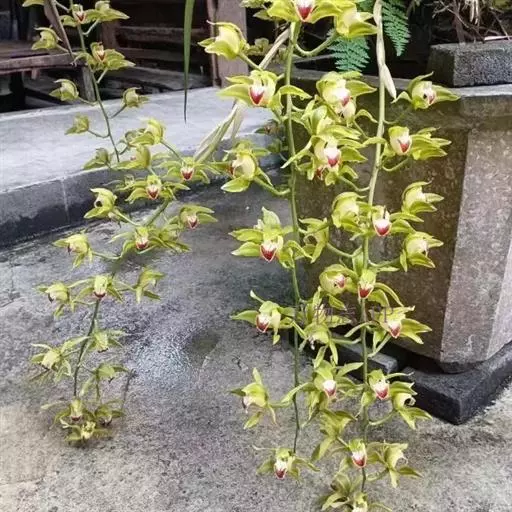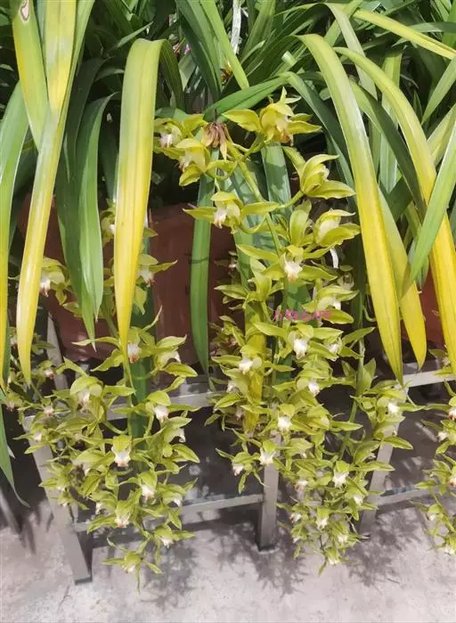 碧玉兰(学名:Cymbidium lowianum (Rchb. f.) Rchb. f.):附生植物;假鳞茎狭椭圆形,略压扁,长6-13厘米,宽2-5厘米,包藏于叶基之内。叶5-7枚,带形,长65-80厘米,宽2-3.6厘米。花葶从假鳞茎基部穿鞘而出,近直立;总状花序具10-20朵或更多的花;萼片和花瓣苹果绿色或黄绿色,有红褐色纵脉,唇瓣淡黄色;花瓣狭倒卵状长圆形。花期4-5月。