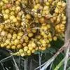 花序和花与槟榔相似,但雄花更小,只有3枚雄蕊。果实比槟榔小,卵状纺锤形,长3.5厘米,直径1.5厘米,顶端变狭,具小乳头状突起,果熟时由黄色变为深红色。种子椭圆形至倒卵球形,长1.5-1.8厘米,直径1-1.2厘米,胚乳嚼烂状,几无涩味,胚基生。果期8-9月。