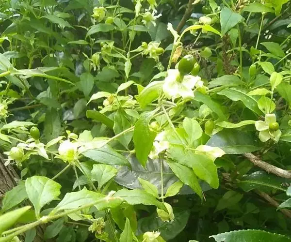 狗筋蔓(学名:Cucubalus baccifer L. , Sp. Pl.)是石竹科蝇子草属植物,别名:白牛膝、抽筋草、筋骨草,拉丁文名:Cucubalus baccifer L. 石竹科、狗筋蔓属多年生草本,全株被逆向短绵毛。根簇生,长纺锤形,白色,断面黄色,稍肉质;根颈粗壮,多头。茎铺散,俯仰,多分枝。叶片卵形、卵状披针形或长椭圆形,基部渐狭成柄状,顶端急尖,边缘具短缘毛,两面沿脉被毛。圆锥花序疏松;花梗细,具1对叶状苞片;花萼宽钟形,蒴果圆球形,呈浆果状,成熟时薄壳质,黑色,具光泽,不规则开裂;种子圆肾形,肥厚,黑色,平滑,有光泽。