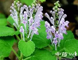 轮伞花序2花,组成长1.5-15厘米、密被长柔毛、偏向一侧的顶生及腋生总状花序;苞片宽卵圆形或近圆形,长宽约4毫米,先端具短尖,外被红褐色腺点,无毛,边缘膜质;花梗长1.5毫米,密被柔毛。花萼钟形,10脉,长约3毫米,直伸,下部被长柔毛,夹有黄色腺点,内面喉部有疏柔毛环,结果时增大,长至1.1厘米,平伸或下垂,基部一边肿胀,萼檐二唇形,上唇宽大,3齿,中齿较小,下唇比上唇稍长,2齿,齿披针形。花冠白色至紫红色,长3-4毫米,外面略被微柔毛,内面在下唇片基部略被微柔毛,冠筒短,长2-2.5毫米,喉部斜钟形,冠檐近二唇形,上唇微缺,下唇3裂,中裂片较大,侧裂片与上唇相近似。雄蕊4,几不伸出,前对稍长,离生,插生喉部,花丝扁平,花药2室,室平行,其后略叉开或极叉开;雌蕊1,子房4裂,花柱基底着生,柱头2室;花盘在前边膨大;柱头2裂。果萼长约10mm。花柱先端相等2浅裂。花盘前方呈指状膨大。
