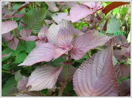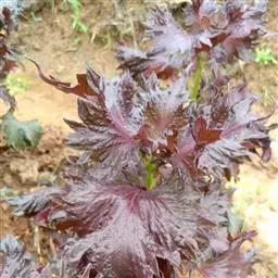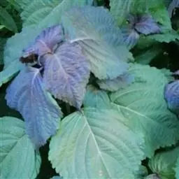 紫苏(学名:Perilla frutescens (L.) Britt. ),别名:桂荏、白苏、赤苏等;为唇形科一年生草本植物。具有特异的芳香,叶片多皱缩卷曲,完整者展平后呈卵圆形,长4至11厘米,宽2.5至9厘米,先端长尖或急尖,基部圆形或宽楔形,边缘具圆锯齿,两面紫色或上面绿色,下表面有多数凹点状腺鳞,叶柄长2至5厘米,紫色或紫绿色,质脆。嫩枝紫绿色,断面中部有髓,气清香,味微辛。