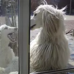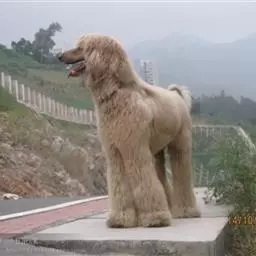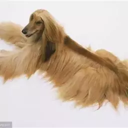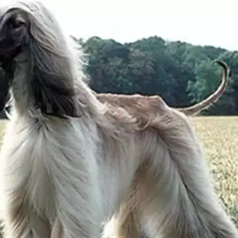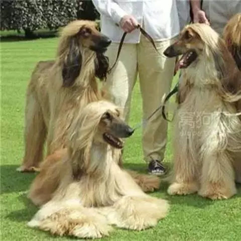 阿富汗猎犬全身披丝绢状的长毛,毛色鲜艳,呈多种颜色,背中线附近毛短,…