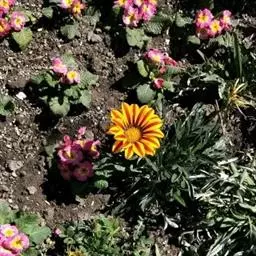 小花紫红色,淡蓝色,粉红色或近白色;舌片开展,长椭圆形,长2.5-3.5厘米,宽1-1.5厘米,顶端具3小齿;管状花黄色,长约6毫米。瘦果长圆形,长约1.5毫米,具棱,初时被毛,后变无毛。冠毛白色,长4-5毫米。花果期3-7月。有紫色、紫白色、紫色,紫白色比较常见。