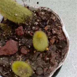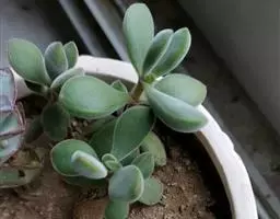 肉质叶排列成标准的莲座状生于短缩茎上,倒卵匙形,被白粉。生长旺盛时其叶盘直径可达20厘米, 叶片匙形, 稍厚, 顶端有小尖。
