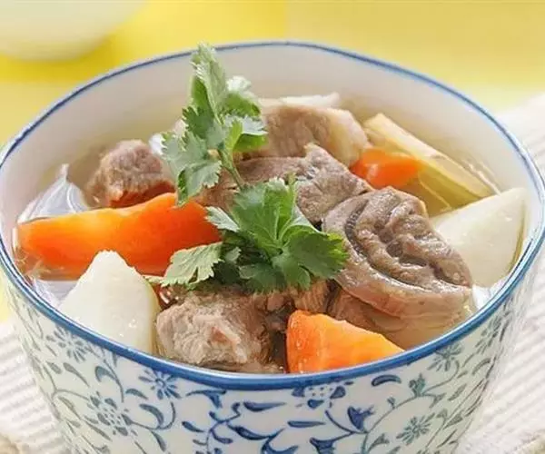 山药炖羊肉是一道菜品,由羊肉、山药和香菜三者搭配食用,做法简单,适宜于体虚胃寒、四肢冰冷、慢性哮喘、贫血以及阳气不足的人。