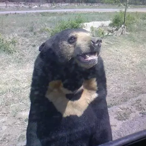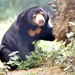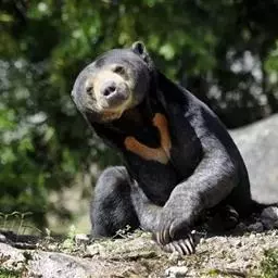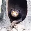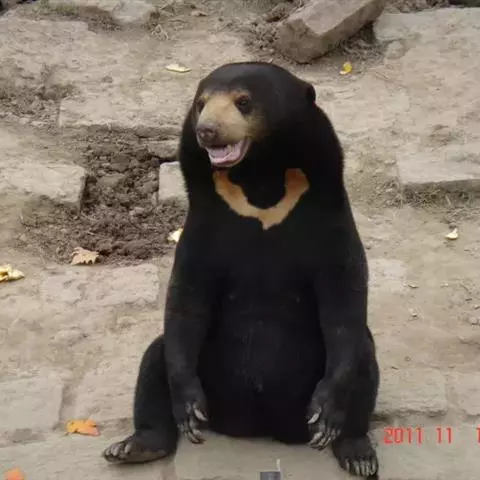 马来熊,是食肉目熊科马来熊属哺乳动物。体胖颈短,眼睛和耳朵小;头部短圆;全身乌黑光滑;鼻唇周为棕黄色,…