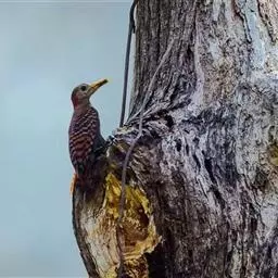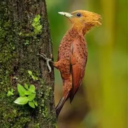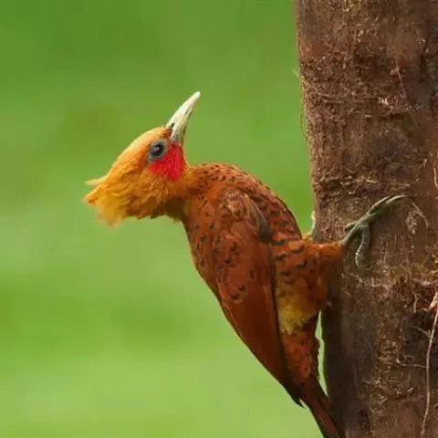 栗啄木鸟:是一种红褐色啄木鸟,体长21厘米。雄性成鸟整个头棕色,…