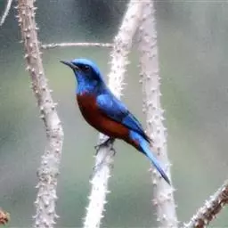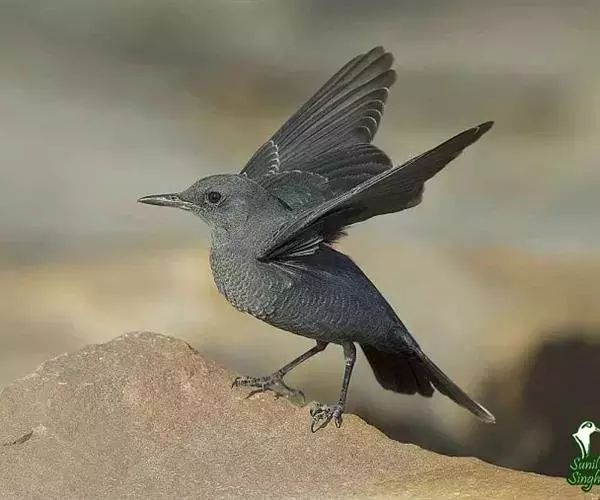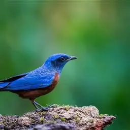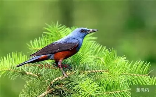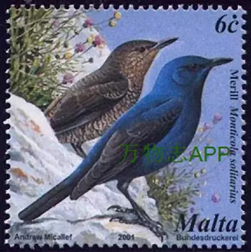 蓝矶鸫(学名:Monticola solitarius)是中等体型的青石灰色矶鸫,雄鸟上体几乎纯蓝色,两翅和尾近黑色;下体前蓝后栗红色。雌鸟上体蓝灰色,翅和尾亦呈黑色;下体棕白,各羽缀以黑色波状斑。夏季时常栖息于多岩石的山地或海岸上。冬季时南迁,偶见于城墙、古塔、废墟等处。它们取食或由高处直落地上捕取,或骤然飞出在空中捕食飞虫。雄鸟在繁殖期中善于鸣叫,鸣声富有音韵,十分动听,繁殖期在每年的4-7月,巢置于山腰的岩隙间,形似碗状。巢基以苔藓、枝条、树皮等所造成,内垫以细草,须根等。每窝产4枚卵,淡蓝色,有时在钝端处缀以红褐色细点。主要以昆虫为食,如蝼蛄、蝗虫等,也吃蜘蛛。分布广泛,为留鸟及候鸟,见于欧亚大陆、中国、菲律宾、东南亚、马来半岛、苏门答腊及婆罗洲。是马耳他的国鸟